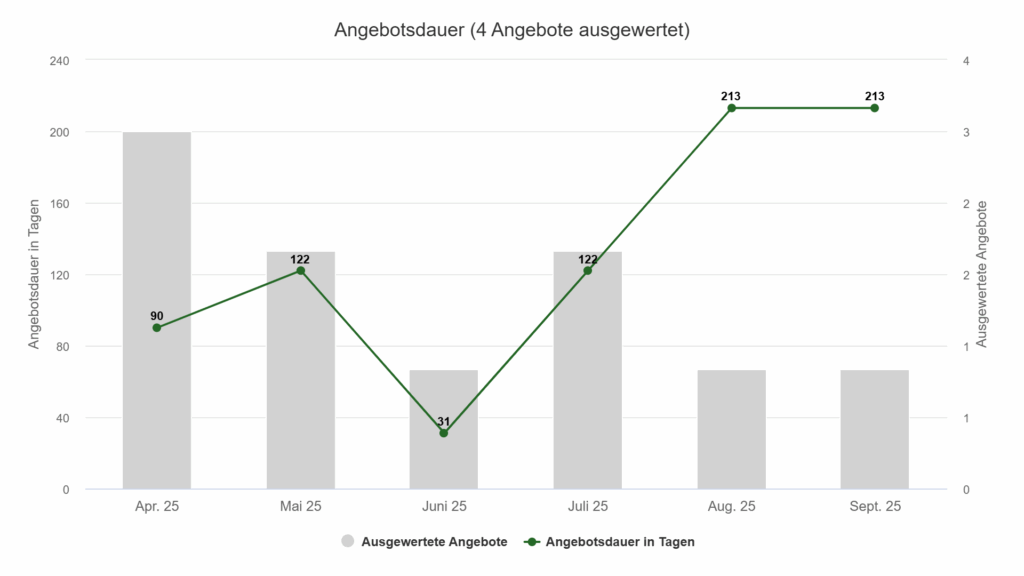 - August/September 2025: Die langen Angebotszeiten deuten auf zögerliche Käufer und steigende Preisverhandlungen hin.